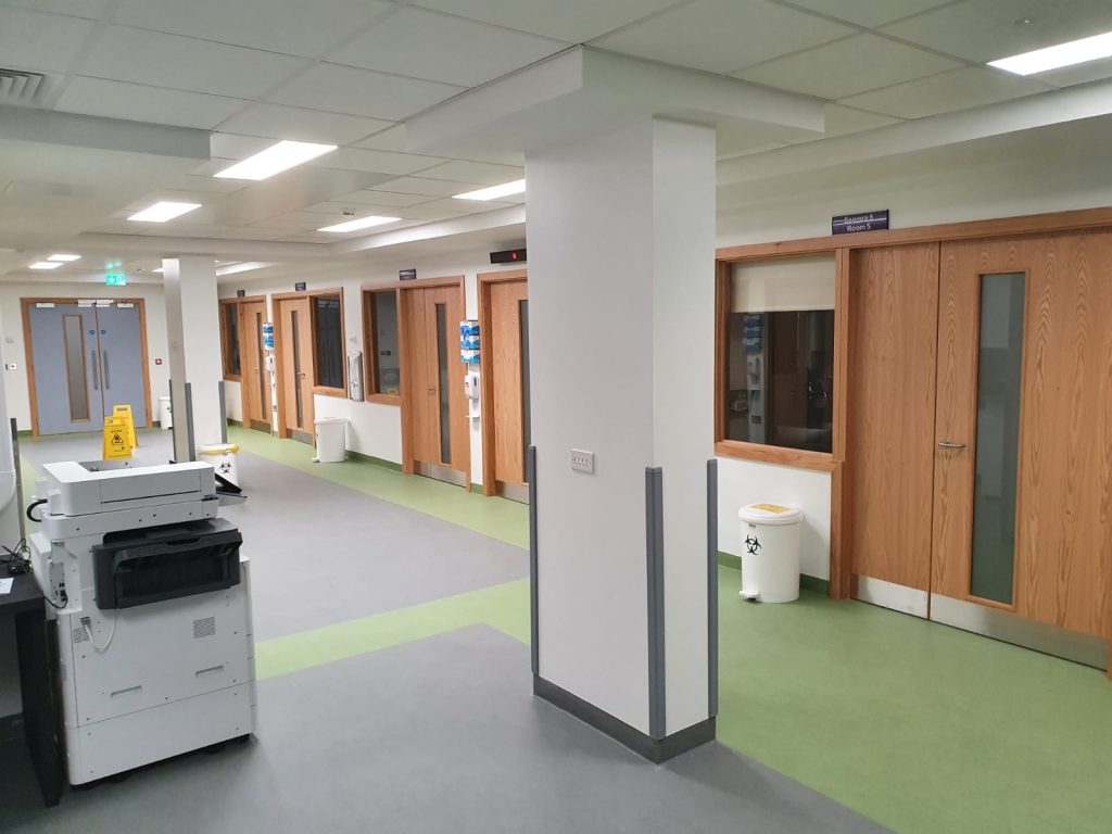 Description: Beaumont Hospital, Beaumont Road, Dublin 9.; (1) MAU Building – Refurbishment & Upgrade. (2) Finance Building - Fire Upgrade Work. (3) Corridor - Fire Upgrade. (4) St Martins Ward – Refurbishment & Upgrade. (5) ENT Ward - Refurbishment & Upgrade. (6) Courtyard 3 - Conversion to a Temporary E.R. overflow Dept.