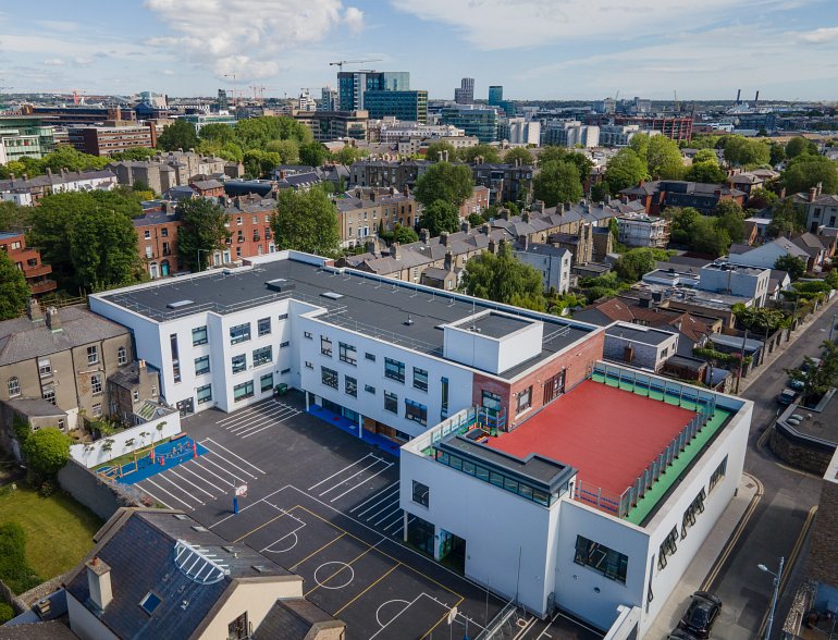Description: The works comprise of the demolition of all the existing buildings and structures on and inner city site, and the construction of a new 24 classroom primary school building with ancillary accommodation (3850m2). Over part three and part two storeys, including all associated site works and a new rooftop external play area at second floor level to the south of the new building. Contract included the provision and removal on completion of fully serviced single storey 3 classroom temporary modular cabin school accommodation on site.